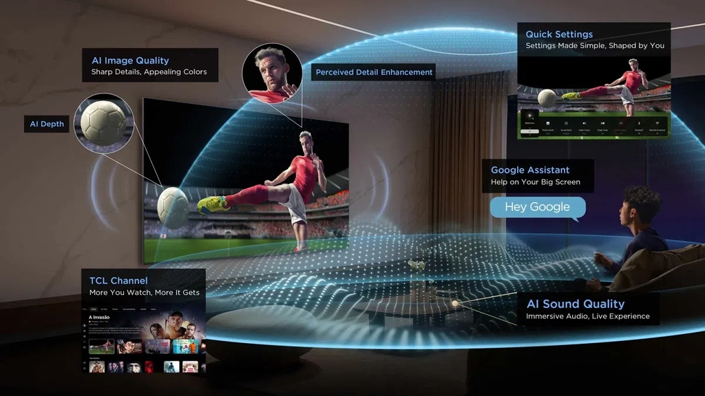 Điểm làm nên sự khác biệt của P8L so với các dòng tivi thông thường chính là TCL AI. Con chip AiPQ Pro Processor tự phát triển không chỉ xử lý hình ảnh mà còn học thói quen của bạn. Nó tự động nhận diện bạn đang xem phim, chơi game, hay nghe nhạc để tinh chỉnh hình ảnh và âm thanh phù hợp nhất.